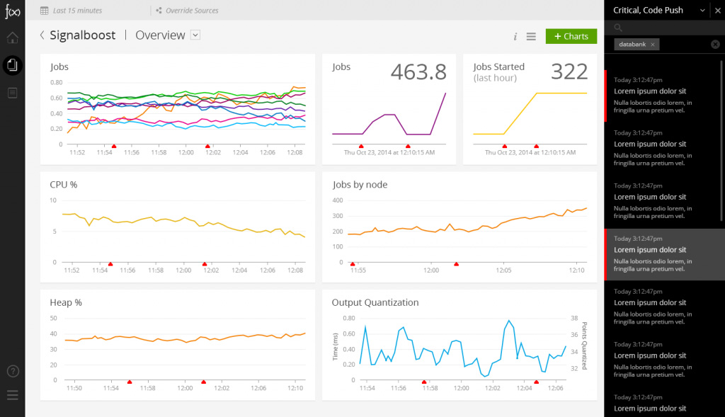 Creating a charting system for the huge amount of complex, aggregated data collected by SignalFx was a key element of the product design. As we ran though typical use scenarios, new UX elements for the charting system would emerge.