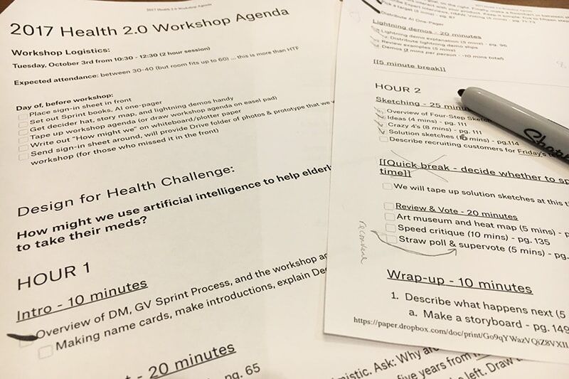 Workshop facilitation is an important skill in any designer’s toolkit. At DesignMap, we often facilitate workshops at the beginning of the design lifecycle. We use them to define and build consensus on product strategy, generate personas, go through rapid product iteration sprints and more. Normally our participants are small groups of 5-10 clients with a shared understanding of the product space and common goals. In this case, the only thing we knew about our participants was that they were interested in digital health technology.